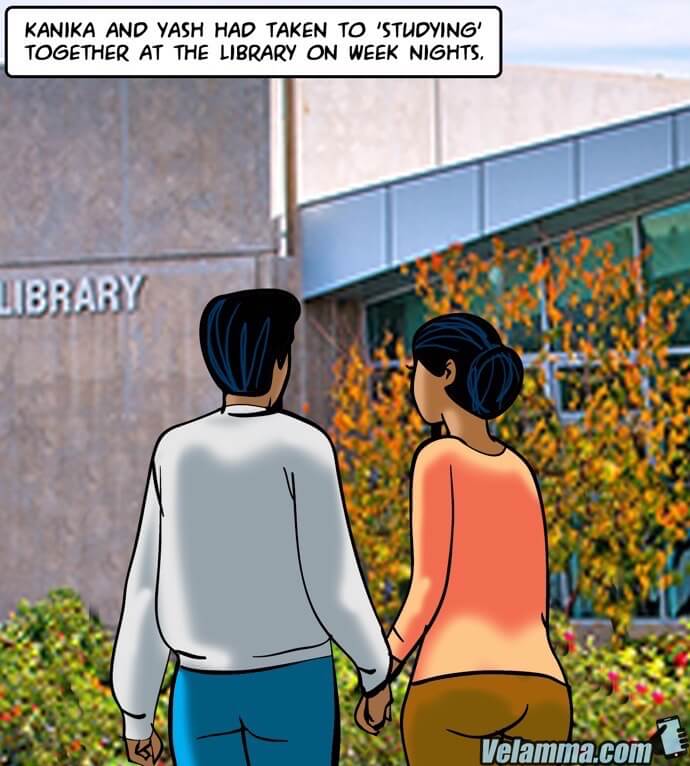 Velamma's naive country cousin Kanika has started her first semester at university. She even has her first boyfriend. But when the students' fooling around leads to chaos in the campus library, Velamma must cum and sort the situation with faculty, while Kanika takes notes!